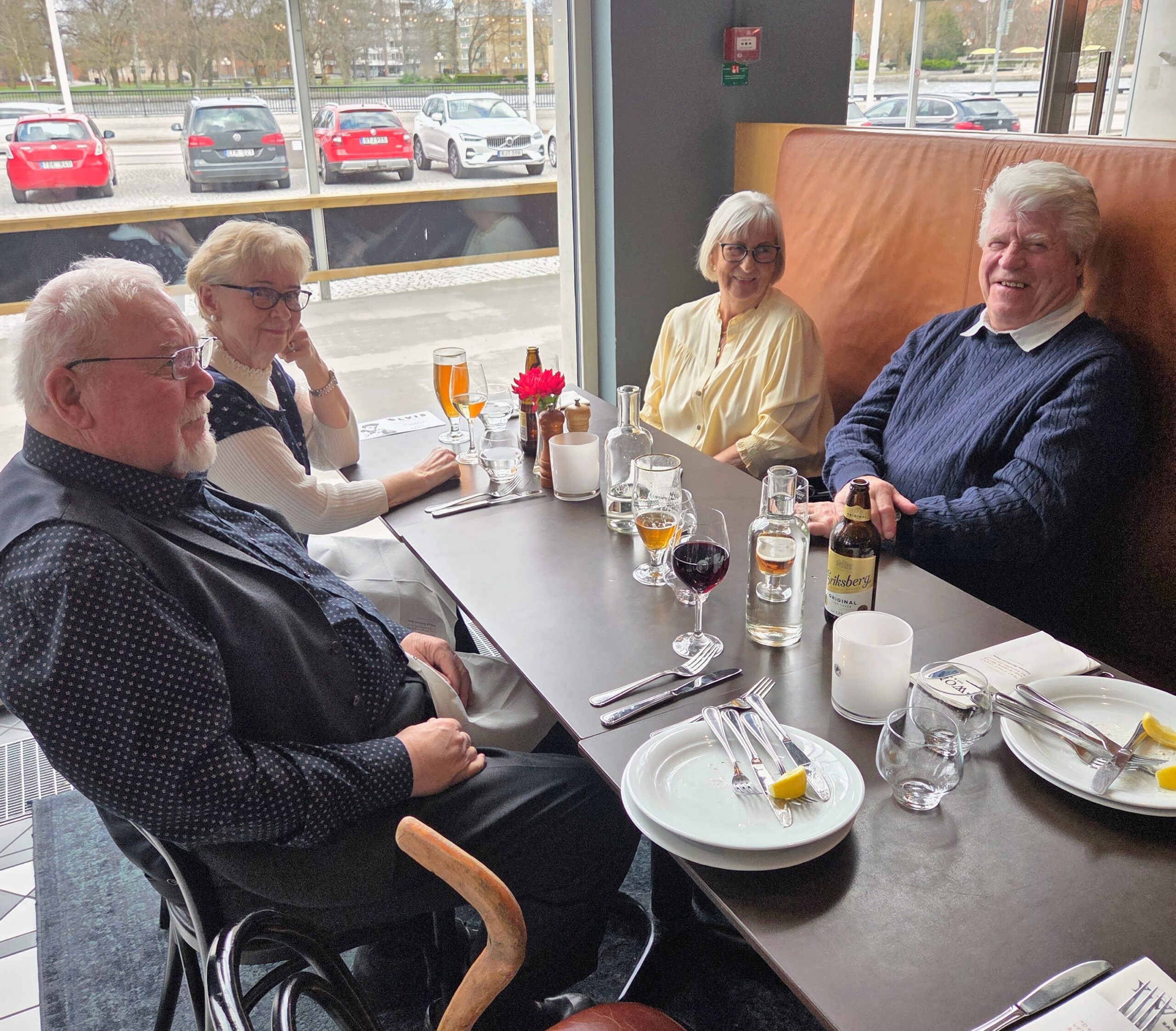 Annandag påsk 6 april 2026 samlades 23 Aktiva Seniorer på Elite Stadshotellet i Eskilstuna för att se showen ”Elvis – en kväll med hans originalmusiker och vänner” samt avnjuta en 2-rätters ”Elvismiddag” på restaurang Y_WON. Middagen som serverades innan showen, bestod av en god Toast Skagen med annorlunda upplägg då brödet låg vid sidan av skagenröran. Till varmrätt fick vi en generös tallrik med helstekt fläskfilé, potatiskaka samt chilikryddade haricots verts. Mycket välsmakande.