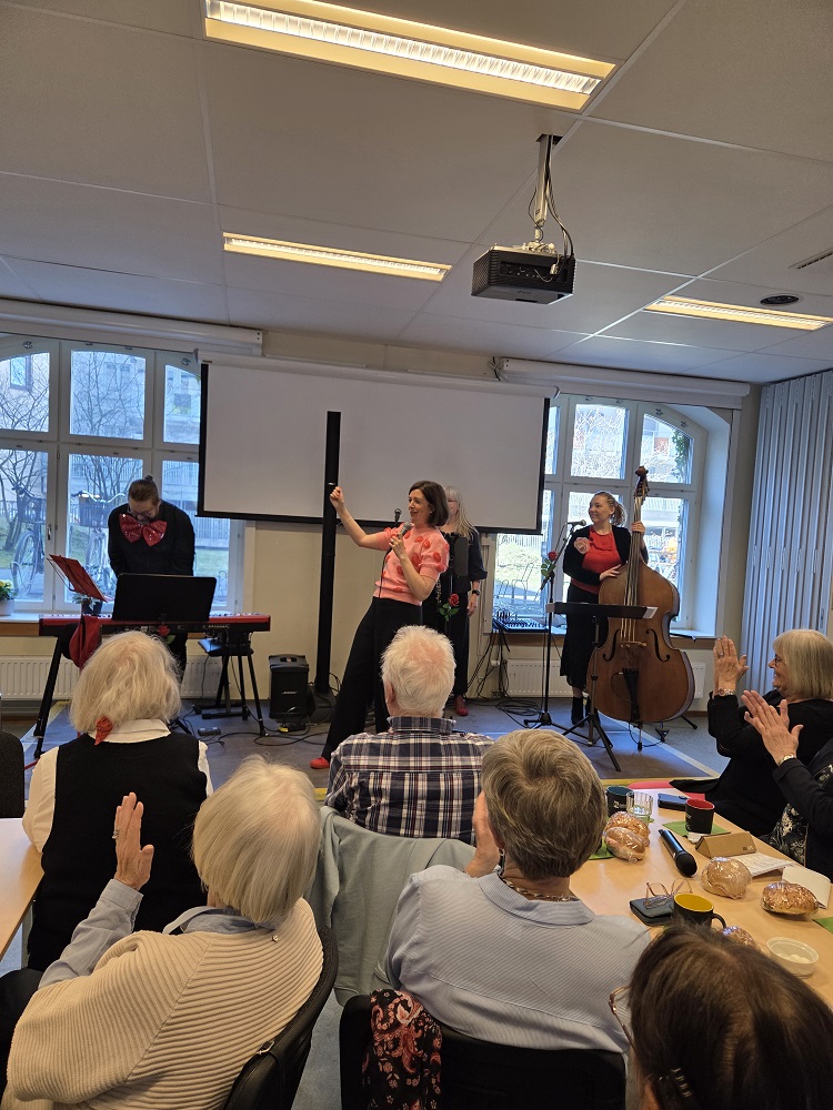 Den 9 april samlades 114 Aktiva Seniorer på Seniorcentrum för att lyssna på Scenkonst Sörmland. Ordförande började med att hälsa alla välkomna och speciellt åtta nya medlemmar. Sedan intog Scenkonst Sörmland scenen. Det var Anette Kumlin oboe, Ingela Schale Berghagen sång, Sanna Andersson bas och Lenne Lehtonen piano.