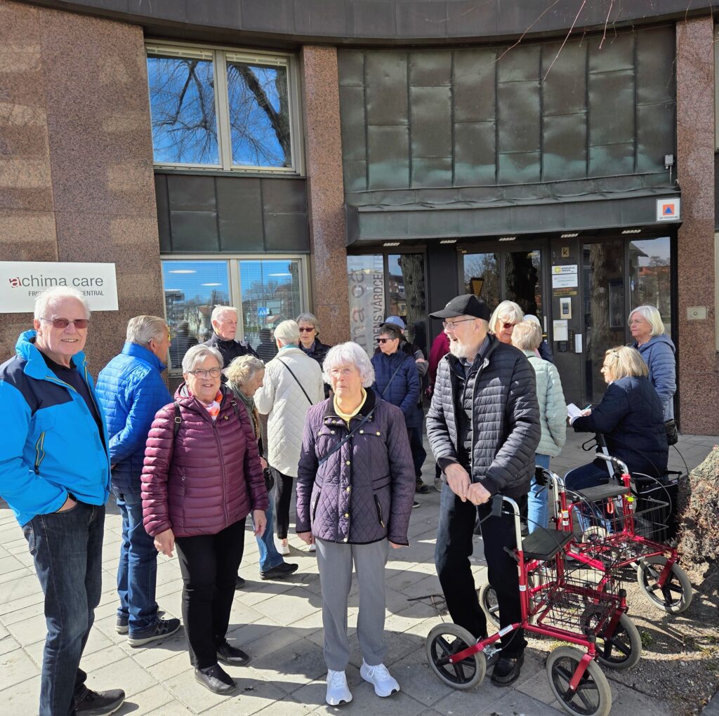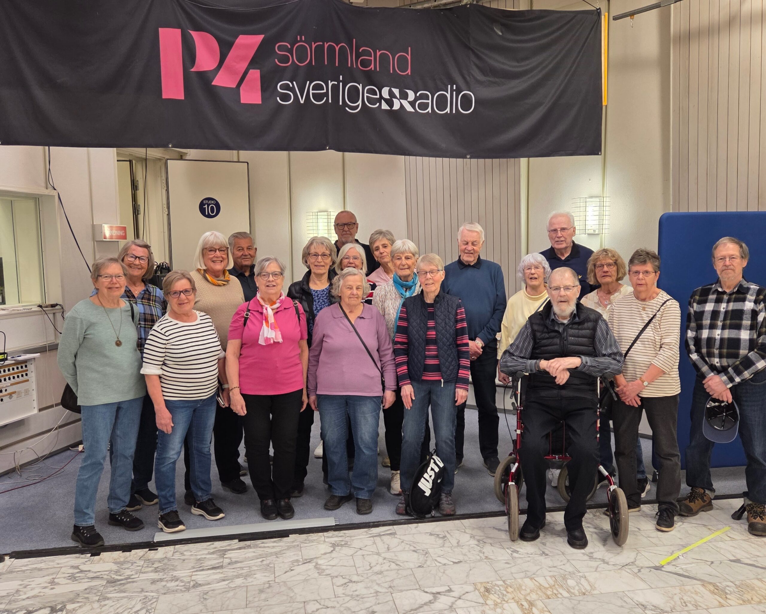 Den 15/4 samlades 20 medlemmar på Tingsgården för gemensamt fika innan studiebesöket på Radio Sörmland, Rademachergatan 1. Där blev vi mottagna av programledaren Jonas Carnesten, som visade oss runt i lokalerna där det arbetar 20-25 personer. Jonas berättade om lokalradion vilken informerar oss om vad som händer i länet.