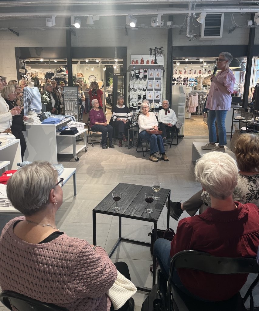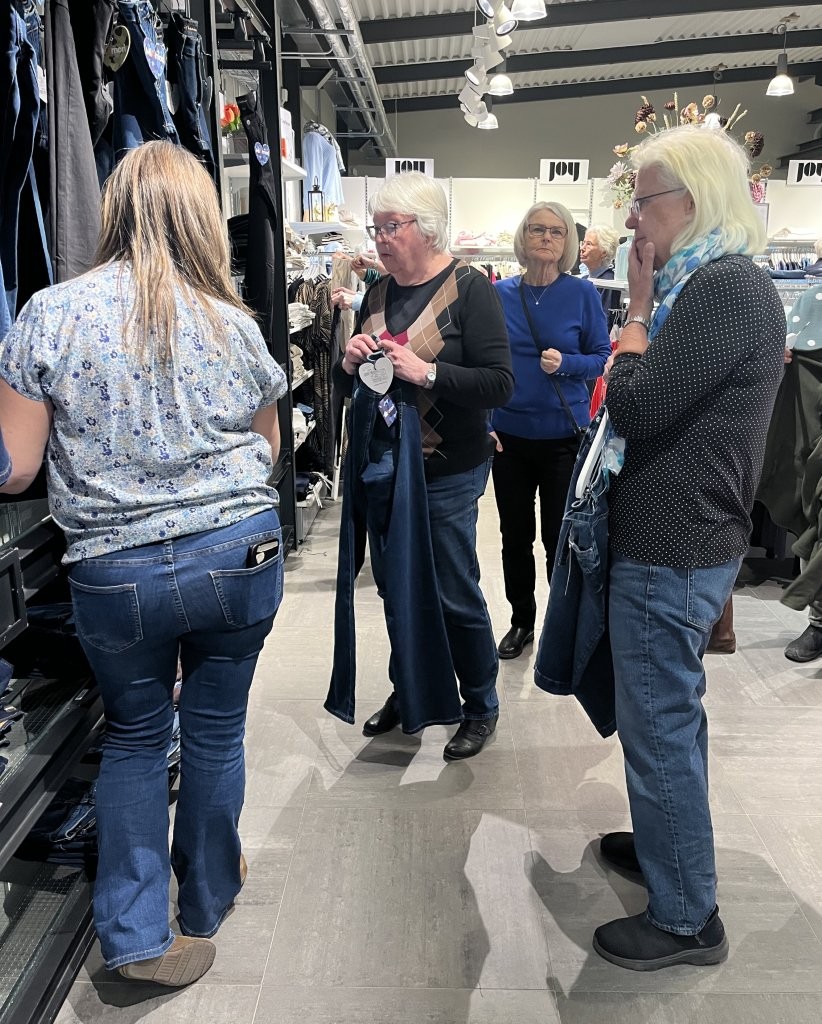 Vi blev mottagna av fem anställda i affären och blev serverade cider, vin och lite gott tilltugg innan en liten modevisning började som gjordes av expediterna själva. Det var många fina vårkläder som visades för oss.