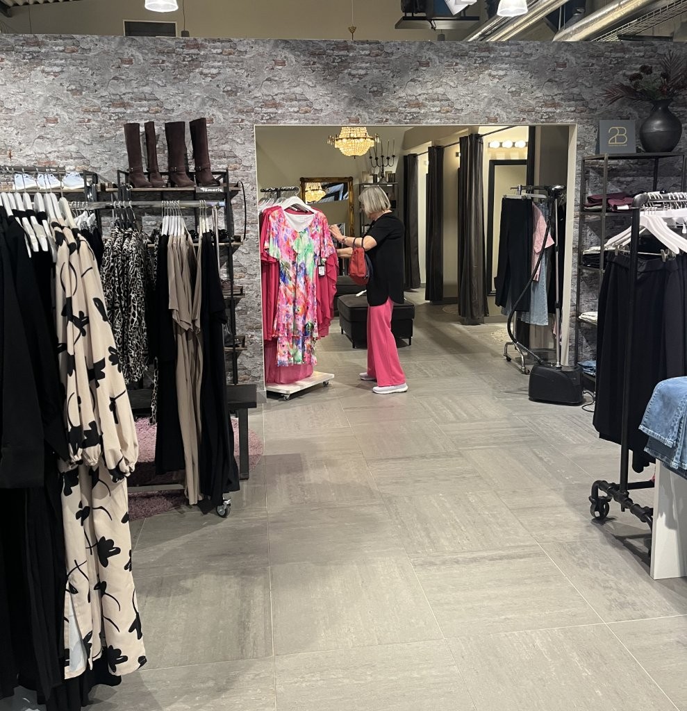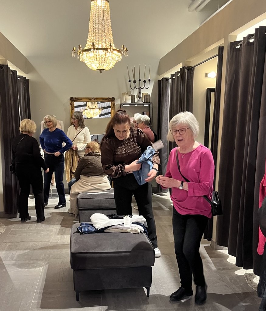 Efter det blev det full fart bland kläderna men framför allt i provrummen. Två till tre personer delade på ett provrum och de hjälpte även varandra som smakråd. Det var en glad och hjärtlig stämning hela kvällen.